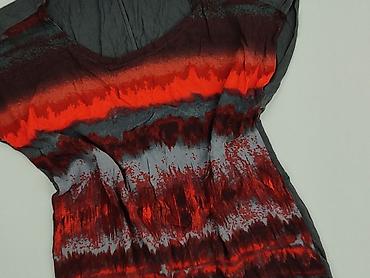 Bluzka damska SJ Paris, rozmiar S - Fason: lekka tunika z długim rękawem - Dekolt: w serek z krótką listwą guzikową - Wzór: patchwork/boho – czerwienie, granaty i biel, drobne geometryczne motywy ...
