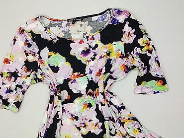 Bluzka damska dh z motywem kwiatowym - Krój: tunikowy, swobodny, z efektowną, asymetryczną narzutką/przypinką z przodu - Rękaw: 3/4 - Dekolt: w kształcie litery V - Tył i boki: tkanina w kremowym ...