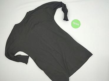 Czarna bluzka damska z krótkim rękawem, lekko oversize/asymetryczna. - Materiał: cienka, miękka dzianina (prawdopodobnie bawełna z domieszką). - Dekolt: okrągły. - Krój: luźny, opadające ramiona. -...