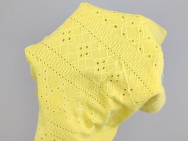 Żółta tunika/bluzka damska z krótkim rękawem. - Fason: lekko przedłużany, tunikowy, z obniżonym pasem/ściągaczem na dole - Dekolt: miękki, szeroki kołnierz z troczkami do lekkiego ściągnięcia/prze...