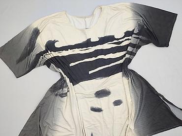 Asymetryczna tunika/sukienka damska 158C - Krój: oversize, asymetryczny z dłuższym, zwężającym się bokiem; opuszczona linia ramion - Dekolt: okrągły - Rękawy: krótkie - Detale: naszywana kieszonka...