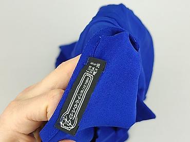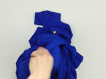 Swetrowa sukienka damska, niebieska - Fason: dopasowany, dzianinowy, długość mini/tuż nad kolano - Dekolt w kształcie litery V zdobiony złotymi łańcuszkami (biżuteryjny akcent, niewymagający dodat...