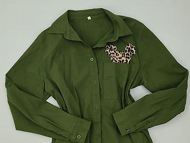 Damska tunika/koszula w odcieniu khaki/szaro-oliwkowym. - Fason wydłużony, lekko taliowany, z kołnierzem i zapięciem z przodu (ukryta listwa – bez widocznych guzików). - Rękawy 3/4. - Na piersi ...