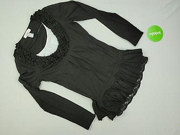 Czarna tunika damska, rozmiar L. - Fason: luźny, z lekko rozszerzanym dołem - Dół wykończony falbaną z przodu i z tyłu - Rękawy 3/4 z możliwością podpięcia (guzik przy mankiecie) - Dekolt okrągły ...