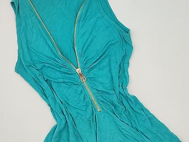Bluzka damska bez rękawów, kolor jasny turkus/blekit. Prosty, luźny krój typu tunika z okrągłym dekoltem. Rozmiar z metki: XXXL. Lekki, miękki i przewiewny materiał (cienka dzianina), komfortowy w ...