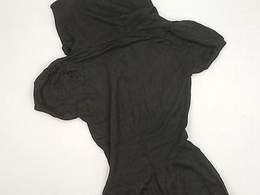 Damska bluzka/tunika z golfem, czarna, rozmiar M. - Fason: luźny, oversize; długość tunikowa - Golf/szeroki kołnierz typu komin - Rękawy 3/4 - Dół z ozdobnym wiązaniem po boku (metalowe oczka + ta...