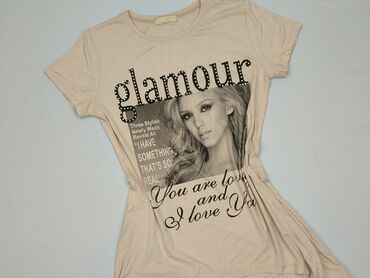 - Front: duży nadruk w stylu magazynowym z napisem „glamour” ozdobionym drobnymi kryształkami oraz napisami „You are lovely and I love You”.