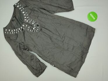 Tunika damska ANDREA, rozmiar XXL - Kolor: jasnoszary (LIGHT GREY) z nadrukiem w odcieniach fioletu i czerni - Fason: luźna tunika z falbaną na dole, rękaw 3/4, dekolt w łódkę/zaokrąglony - Ozdoby...