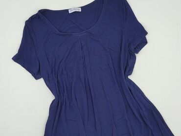 Granatowa tunika/bluzka damska Moglie – rozmiar XL - Kolor: ciemny granat - Krój: swobodny, lekko marszczony przód pod dekoltem - Rękaw: krótki - Dekolt: okrągły z ozdobnymi, krzyżującymi się pase...