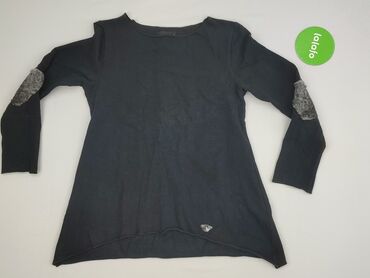 Sukienka/tunika damska NU. (rozmiar 38) - Kolor: czarny - Fason: prosta, lekko przedłużona tunika z długim rękawem i okrągłym dekoltem - Charakterystyczny element: duża aplikacja z przodu w formie...