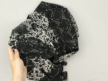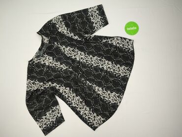 Czarna bluzka/tunika z kopertowym przodem i subtelną fakturą w drobną kratkę. - Krój: kopertowy przód z zakładkami, lekko asymetryczne cięcia, delikatne marszczenia na rękawach, zapinana z przodu ...