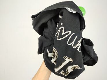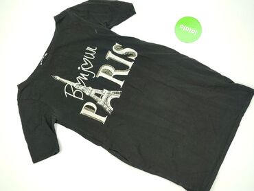 Czarna bluzka damska z krótkim rękawem, lekko oversize/asymetryczna. - Materiał: cienka, miękka dzianina (prawdopodobnie bawełna z domieszką). - Dekolt: okrągły. - Krój: luźny, opadające ramiona. -...