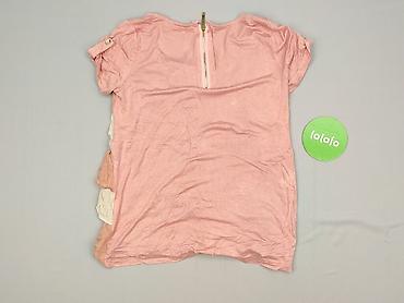 Bluzka damska, rozmiar M - Kolor: pudrowy róż - Fason: luźny, z opadającą linią ramion; dekolt łódka - Rękawy: 3/4 z dekoracyjnymi rozcięciami wzdłuż całej długości, spinane kilkoma małymi kokardka...
