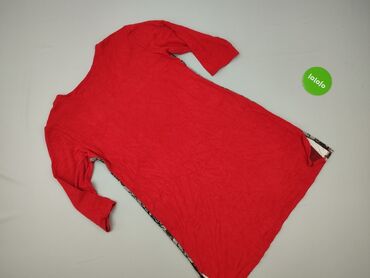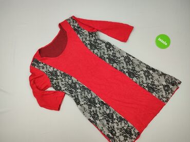 Czerwona damska tunika/bluzka z krótkim rękawem - Marka: Fashion (na metce) - Rozmiar: L - Krój: tunikowy, lekko rozkloszowany dołem; odcięcie pod biustem z delikatnymi zakładkami - Dekolt: głębok...
