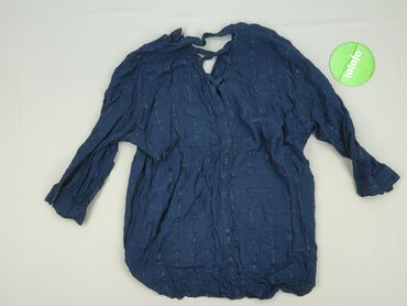 Granatowa damska tunika/bluzka z dekoltem w serek. - Fason: luźny, lekko wydłużony tył, rozcięcia po bokach - Rękawy 3/4 z możliwością podpięcia na patkę z guzikiem - Dekolt V z listwą - Materiał:...