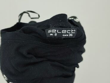 Krótki rękawCzarna tunika damska marki Select, idealna na różne okazje. Wykonana z mieszanki 92% wiskozy i 8% elastanu, co zapewnia komfort noszenia i dopasowanie. Charakteryzuje się luźnym krojem oraz odkrytymi ramionami, ozdobionymi metalowymi kółeczkami, nadającymi unikalny styl. Rękawy są o długości 3/4. Tunika jest w rozmiarze 36 (UK 8).
