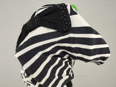 Krótki rękawCzarno-biała tunika damska z krótkim rękawem, ozdobiona motywami w paski i kwiaty. Dekolt w kształcie litery V z marszczeniami dodaje jej kobiecego charakteru. Centralnie umieszczone, potrójne czarne kokardy z cekinami stanowią wyrazisty element dekoracyjny. Luźny krój zapewnia komfort noszenia i pozwala na swobodne ruchy. Tunika idealna do noszenia na co dzień, na przykład z legginsami lub wąskimi spodniami.
