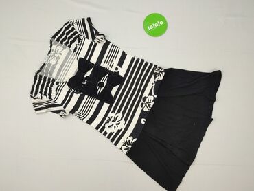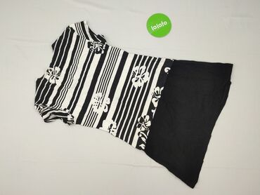 Asymetryczna tunika damska z dzianiny - Kolor: czarny z wstawkami w biało‑czarne pasy - Fason: luźny, asymetryczny dół; wydłużony po bokach - Rękaw: 3/4 - Dekolt: okrągły - Detale: dekoracyjne guz...Stan: