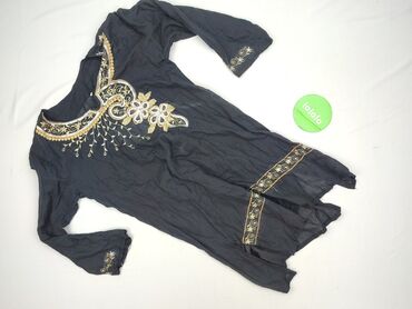 Sukienka/tunika damska NU. (rozmiar 38) - Kolor: czarny - Fason: prosta, lekko przedłużona tunika z długim rękawem i okrągłym dekoltem - Charakterystyczny element: duża aplikacja z przodu w formie...