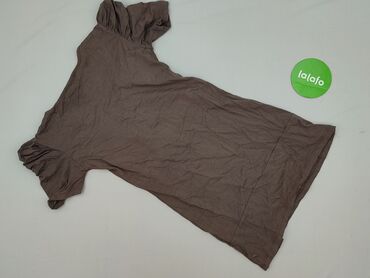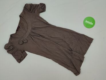 Krótki rękawBrązowa tunika damska marki OXYD. Charakteryzuje się krótkimi, bufiastymi rękawami oraz okrągłym dekoltem. Ozdobiona jest marszczeniami pod dekoltem, które nadają jej luźniejszego fasonu. Dodatkowo, po lewej stronie dekoltu znajdują się dwie ozdobne aplikacje. Tunika może być noszona jako bluzka lub krótka sukienka, idealna na codzienne stylizacje.