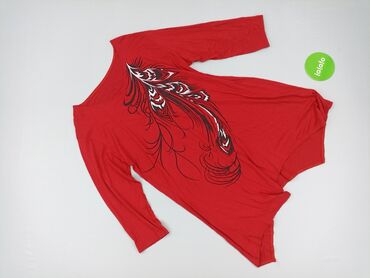 Czerwona tunika/bluzka damska z długim rękawem - Fason: luźna tunika, lekko rozszerzana ku dołowi - Dekolt: w kształcie litery V z szeroką listwą - Rękawy: długie, zakończone gumką przy mankiecie ...