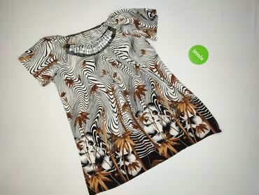 Bluzka/tunika damska z miękkiej, elastycznej dzianiny. - Fason luźny, asymetryczny – wydłużone, trójkątne zakończenia po bokach i na dole. - Okrągły dekolt. - Rękawy 3/4 z mankietem wywijanym. ...
