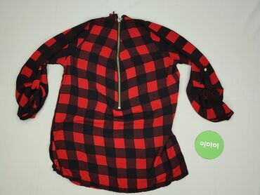 Bluzka damska M Collection - Krój: luźny, lekko zaokrąglony dół - Dekolt: w kształcie litery V, ozdobiony rzędem pięciu białych guzików - Rękawy: długie - Wzór: drobna krata buffalo – czerwono‑cza...