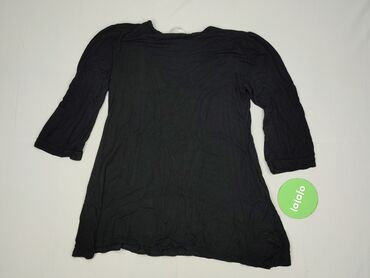 Bluzka/tunika damska Sinsay - Kolor: czarny - Rozmiar: L (na metce) - Krój: luźny, asymetryczny dół z falbaną po prawej stronie - Dekolt: okrągły z troczkami do wiązania - Rękawy: krótkie, z marsz...