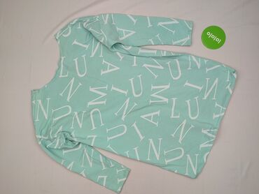 Długi rękawMiętowa tunika/bluza damska z długim rękawem i luźnym krojem typu oversize. Materiał miękki, elastyczny, przyjemny w dotyku (dzianina bawełniana z domieszką elastanu – na zdjęciach widać rozciągliwość i strukturę). Okrągły dekolt, opadająca linia ramion. Całość pokryta dużym, białym nadrukiem liter tworzących napis „LUNA” (rozrzucone litery w stylu typograficznym). Kolor: pastelowa mięta. Długość sięgająca za biodra, proste wykończenia dołu i rękawów. Idealna do legginsów lub jeansów – casualowy, wygodny fason na co dzień.