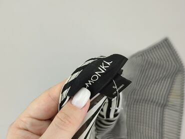 - Wzór: czarno-białe, drobne pionowe paski (różne szerokości pasów na lamówkach dla kontrastu)