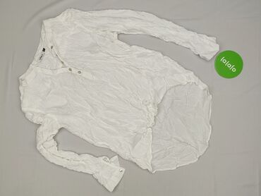 Biała koszula/tunika damska z długim rękawem - Klasyczny, lekko luźny krój - Dekolt w serek z krótką listwą guzikową (2 guziki) - Jedna naszywana kieszonka na piersi - Zaokrąglony dół - Delikatna,...