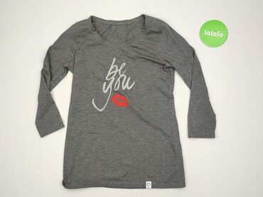 Bluzka damska MLYR z nadrukiem - Kolor: grafitowy - Rozmiar z metki: M - Skład materiału: 95% bawełna, 5% elastan (informacja z metki) - Fason: prosta, lekko dłuższa, z rozcięciami po bokach u doł...