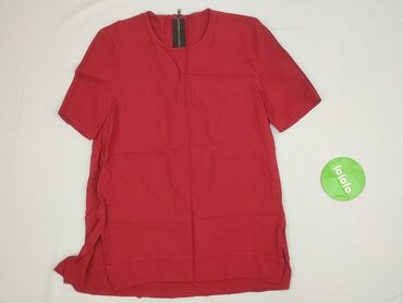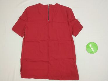 Czerwona bluzka damska z długim rękawem, rozmiar 38. Dekolt okrągły, z tyłu zapinana na zamek błyskawiczny. Bluzka wykonana jest z materiału o jednolitym kolorze. Charakteryzuje się luźnym krojem, ...