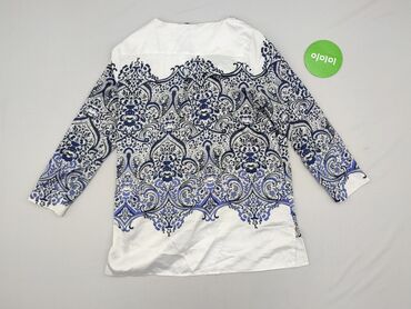 Bluzka damska Blue, rozmiar 44 - Krój: swobodny, z okrągłym dekoltem - Rękawy: długie - Materiał: 70% poliester, 30% wiskoza (metka na zdjęciu) - Wzór: drobny, nieregularny nadruk w odcieniach bie...