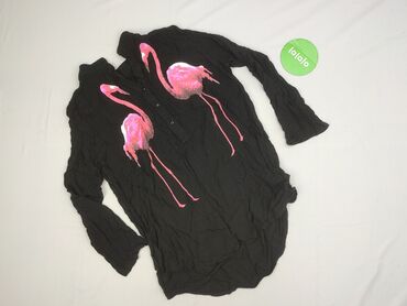Długi rękawCzarna tunika/bluzka damska z długim rękawem, marki MEGI. Z przodu duży nadruk dwóch różowych flamingów. Krój koszulowy z krótką listwą guzikową (kilka guzików z przodu) i lekko wydłużonym, zaokrąglonym dołem. Materiał: 100% bawełna (metka ze wskazaniami prania do 30°C, pranie ręczne, nie chlorować, suszyć w stanie rozwieszonym, prasować w niskiej temp.). Tkanina ma efekt gnieciony. Kolor: czarny z różowym nadrukiem. Idealna jako luźna tunika do legginsów lub jako dłuższa koszula.