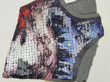 Bluzka damska z krótkim rękawem i kapturem, z unikatowym wzorem łączącym motywy kwiatowe z tekstem przypominającym strony gazety. Szaro-biała kolorystyka nadaje jej nowoczesny i oryginalny wygląd. ...