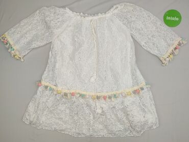 ŚwiętaBiała koronkowa tunika/mini sukienka boho z pomponami