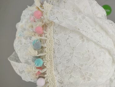 - Kolor: biały (koronka i podszewka biała; pomponiki wielokolorowe pastelowe).
