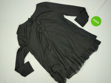 Czarna tunika/bluzka damska z lekkiej, półprzezroczystej tkaniny (szyfon). - Krój swobodny, delikatnie wydłużony, z asymetrycznie zaokrąglonym dołem. - Dekolt w kształcie litery V. - Długie, buf...