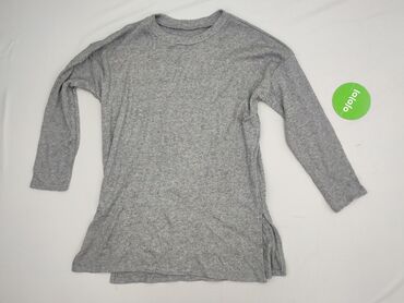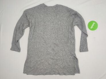Szary sweter/tunika damska z długim rękawem - Fason: wydłużona tunika, prosta linia, delikatnie zwężana ku dołowi - Rękawy: długie, zakończone szerokimi, prążkowanymi ściągaczami - Dół: szeroki śc...Stan: