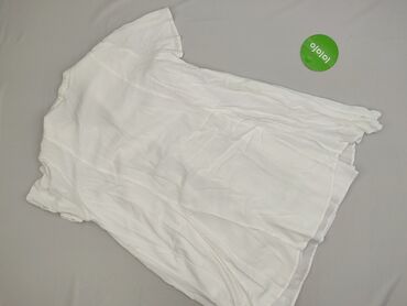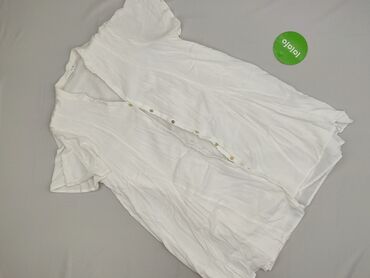 Biała koszula/tunika damska z krótkim rękawem. - Krój: luźny, lekko oversize; przód krótszy, tył wyraźnie wydłużony i zaokrąglony - Dekolt: w kształcie litery V z wstawką/rozcięciem - Kołnierz: ma...