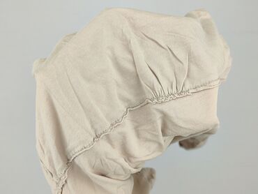 Bluzka/tunika damska w kolorze beżowym. - Fason oversize z odcięciem w talii i marszczeniami, tworzącymi rozkloszowany dół - Dekolt w kształcie litery V - Rękawy do łokcia - Miękka, cienka dzianin...