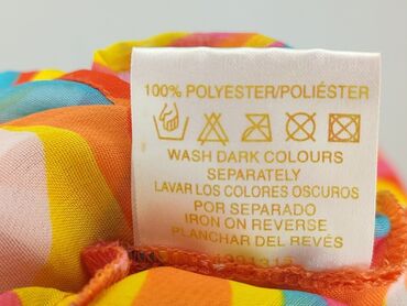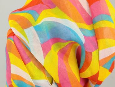 - Wzór: intensywny, wielobarwny print w łukowate kształty (odcienie żółci, pomarańczu, różu, turkusu, błękitu)