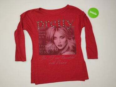 Długi rękawCzerwona tunika/bluzka damska z długim rękawem i nadrukiem na froncie. Na piersi duży prostokątny print z twarzą oraz napisami „pretty”, „there’s more to it”, „I have something to say”, „Yes, I am Beautiful with Brains”. Litery „pretty” ozdobione błyszczącymi dżetami.