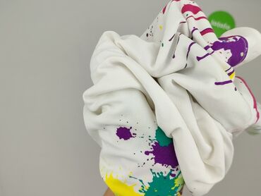 - Wzór: wielokolorowe „chlapania” farbą – intensywne odcienie żółci, zieleni, turkusu, fuksji, fioletu i czerwieni; nadruk u góry (efekt spływającej farby) i przy dole na całym obwodzie