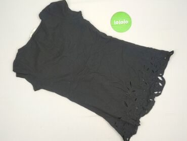 Bluzka damska w kolorze czarnym, wykonana z dzianiny o luźnym splocie, zapewniającym przewiewność. Charakteryzuje się krótkimi rękawami i asymetrycznym dołem z koronkowym wzorem. Delikatne wykończe...