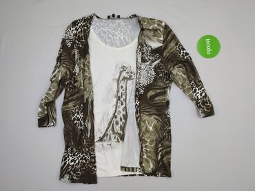 Tunika/sukienka damska Blue Shadow, rozmiar 34. - Kolor: odcienie khaki/oliwkowe - Fason: wydłużona bluza z doszytą falbaną u dołu w panterkowy wzór - Dekolt: w serek z prążkowaną, elastyczną lamó...