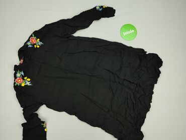 H&M – czarna tunika/sukienka z długim rękawem - Model oversize, lekko marszczony materiał, miękki i lejący - Ozdobny, stojący kołnierz bogato wyszywany perełkami i metalicznymi koralikami - Zapięc...