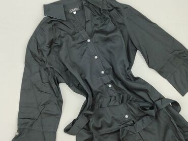 Bluzka/tunika damska H&M - Kolor: czarny - Krój: tunika z krótkim rękawem, dekolt okrągły - Zapięcie: listwa z 7 guzikami z przodu - Detale: delikatne marszczenia przy dekolcie i pod biustem, lekk...