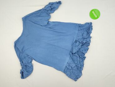 Bluzka/tunika damska w kolorze bardzo jasnego błękitu (prawie pastelowy). - Luźny, swobodny krój z obniżoną linią talii i marszczeniami. - Dłuższy, zaokrąglony tył – efekt high-low. - Długie ręk...Stan:
